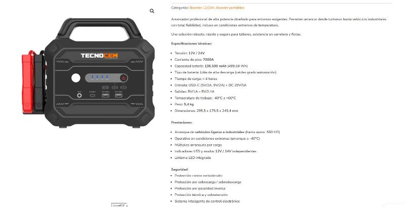 Arrancador profesional de alta potencia diseñado para entornos exigentes. Permiten arrancar desde turismos hasta vehículos industriales con total fiabilidad, incluso en condiciones extremas de temperatura.